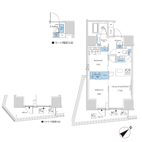 本物件の間取りは1DKから2LDKまで幅広くセレクト。2室を繋げて利用可能なシングル層に人気の1DKをはじめ、 ウォークスルークローゼット付きの1LDK、機能性の高い2LDKなど、多彩な生活スタイルに対応するプランをご用意しました。 質の高いプライベート空間が日々の安らぎをより深めると共に、豊かな都心生活を育みます。