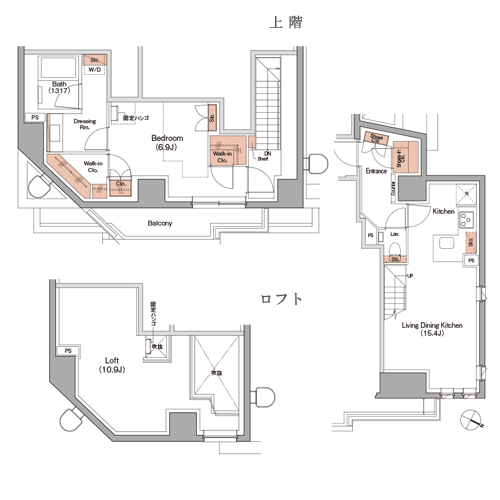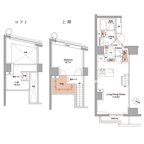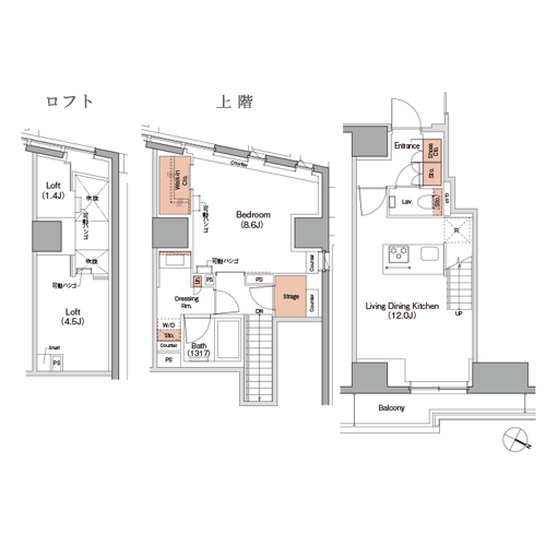 ザ・パークハビオ目黒フォート|間取り図(1LDKメゾネットタイプ)|目黒区下目黒2丁目。JR山手線「目黒」駅徒歩8分に誕生した高級賃貸マンション。