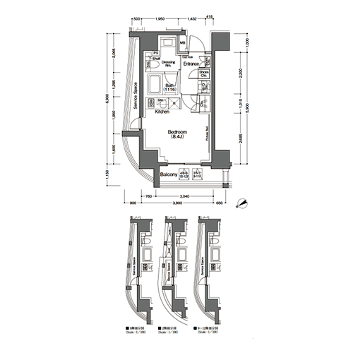 間取りは1R~2LDKのプランをご用意し、シングル層からファミリー層まで多様な生活スタイルに対応しました。 各タイプ共に各種設備や水まわり、収納もバランス良く備わっているため、暮らしやすい生活空間を実現しています。 また、9~12階の1LDK(Hタイプ)ではリビングダイニングキッチンに開放感のあるFIX窓を大胆に使用。 ワンランク上の暮らしをもたらす住空間を演出します。