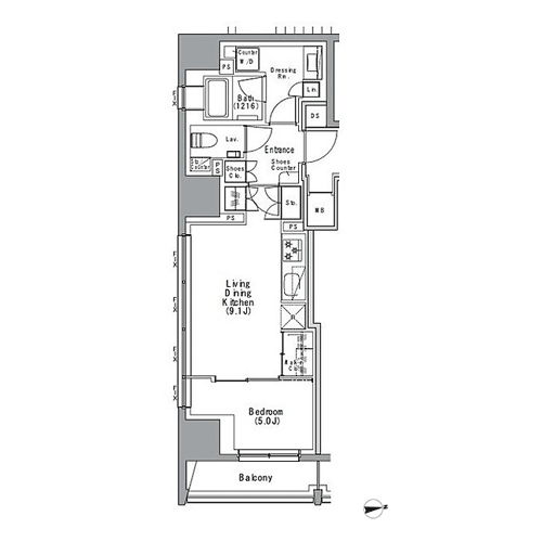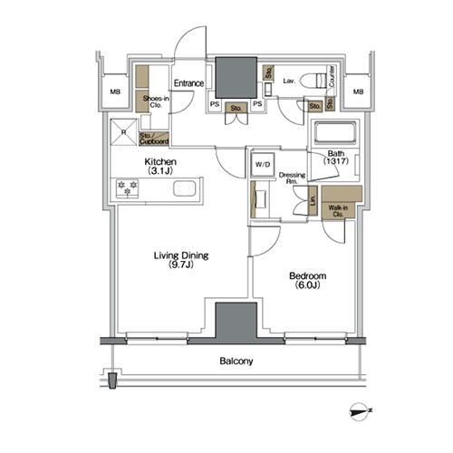 間取りは1R・1DK・1LDKの全6種類。1Rタイプでは、住戸によってウォークインクローゼットやシューズインクローゼットも採用しました。 1DKタイプは寝室とダイニングを区切ることが可能な人気のプラン。水まわりもバランス良く配置されています。 また、DINKS向けの1LDKタイプにはカウンター式のシステムキッチンを取り入れ、お洒落なリビングを演出。 優れた生活空間が描く豊かな都心生活を是非体感してください。