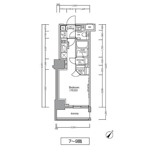 ザ・パークハビオ巣鴨|間取り図(1Rタイプ)|豊島区巣鴨。JR山手線「巣鴨」駅徒歩8分に誕生した高級賃貸マンション。